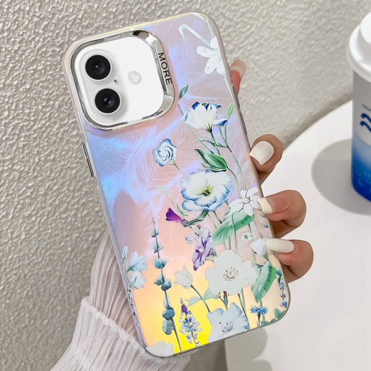 Caja de teléfono TPU para iPhone 16 Plus con textura de flor láser galvanizada (Flor Ah1)