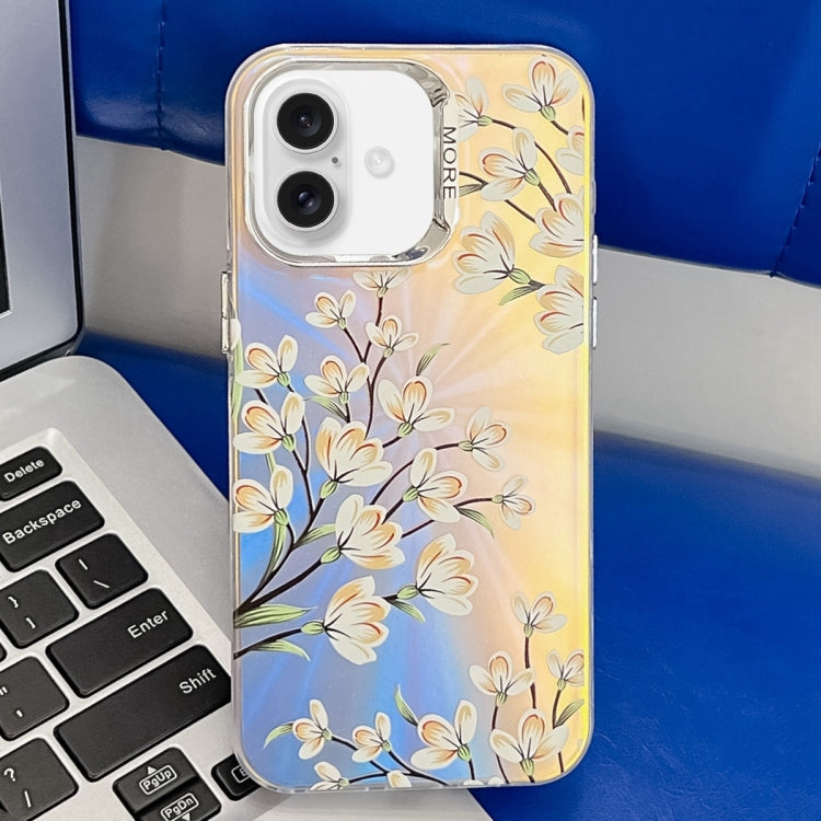 Caja del Teléfono TPU para iPhone 16 con Textura de Flor Láser de Galvanoplastia (Flor de Pera Ah17)