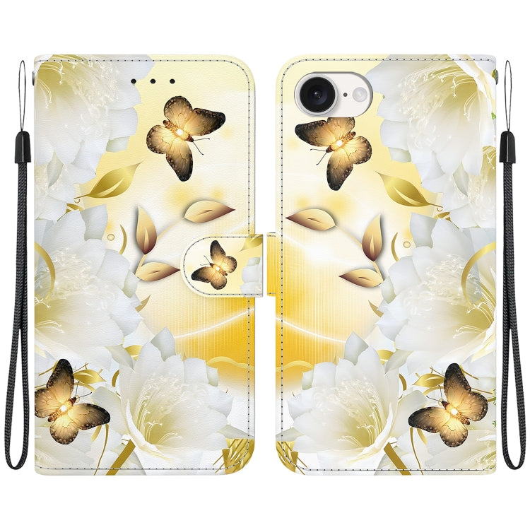 Funda de Cuero para iPhone 16E con Dibujo de Colores y Textura de Cristal (Mariposa Dorada Epiphyllum)