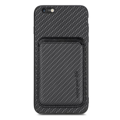 Funda Magnética para Teléfono iPhone 6 Plus 6S Plus Tarjeta Cuero Fibra de Carbono Magsafe (Negro)