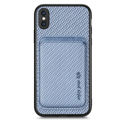 Caja de teléfono para iPhone Xs Max con bolsa de tarjeta magnética de fibra de carbono (Azul)