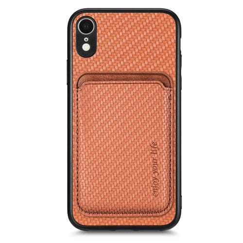 Funda para iPhone Xr Cuero Fibra de Carbono Magsafe Magnética (Marrón)