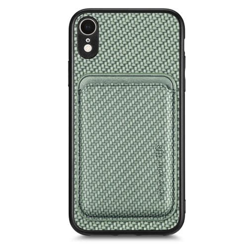 Funda Magnética para Teléfono iPhone Xr Tarjeta Cuero Fibra de Carbono Magsafe (Verde)