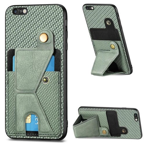 Funda para teléfono iPhone 6 / 6S Carbon Fiber Wallet Flip Card con Soporte en forma de K (Verde)