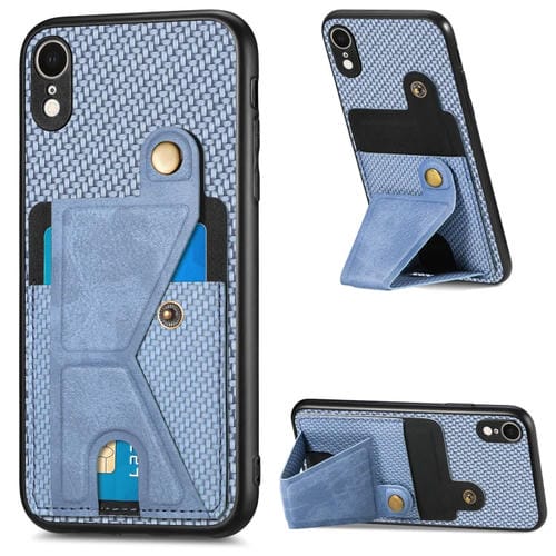 Funda para Teléfono iPhone Xr Carbon Fiber Wallet Flip Card con Soporte en Forma de K (Azul)