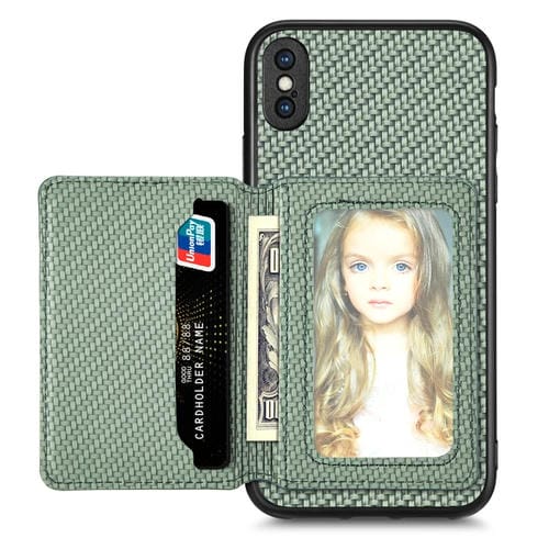 Caja de Teléfono para iPhone X Xs con Bolsa de Tarjeta Magnética de Fibra de Carbono (Verde)