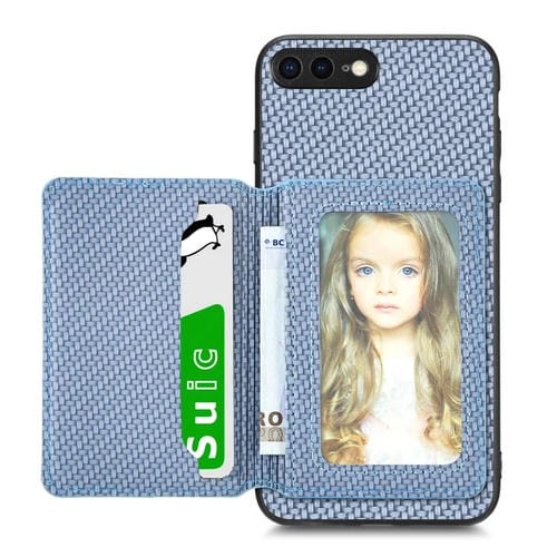 Funda Cartera para iPhone 7 Plus 8 Plus Fibra de Carbono Flip Card con Soporte en Forma de K (Azul)