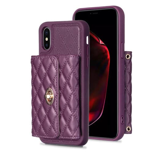 Caja de Teléfono de Cuero Rombal para iPhone X Xs Billetera con Hebilla de Metal Vertical (Púrpura)