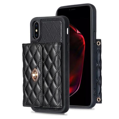 Caja de Teléfono de Cuero Rómbica Billetera con Hebilla Metal Vertical para iPhone X / Xs (Negro)