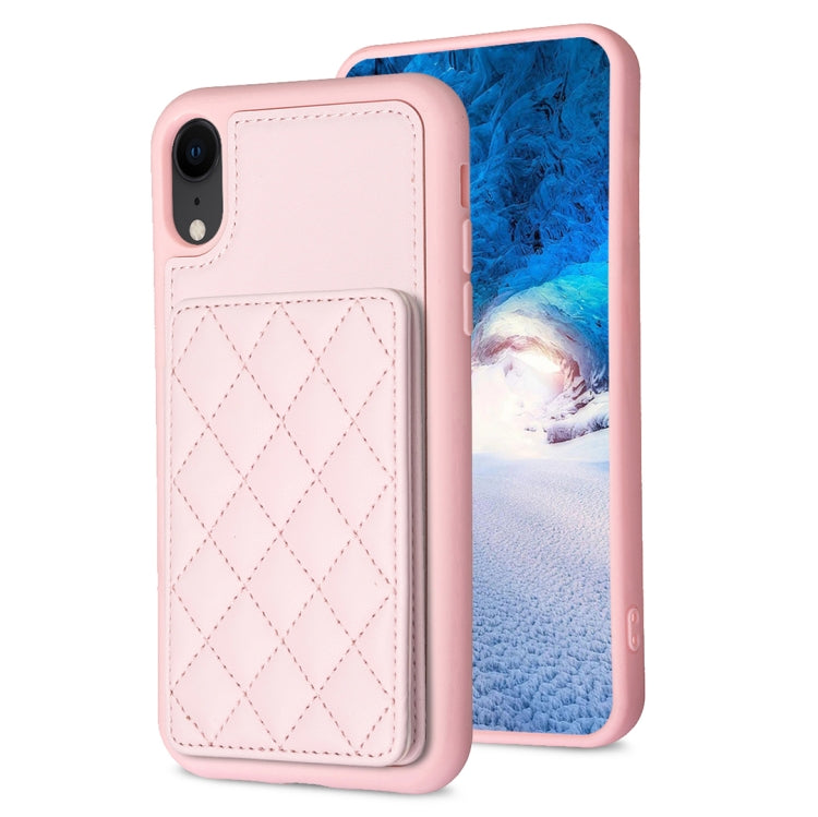 Funda para teléfono iPhone Xr Bf25 Square Plaid Card Bag Holder (Rosa)