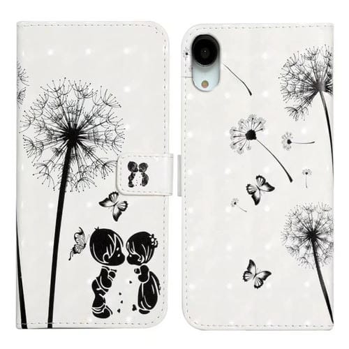 Funda de Teléfono iPhone Xr Cuero Dibujo 3D Relieve al Óleo (Pareja de Diente de León)