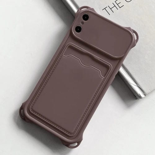 Funda para Teléfono iPhone Xr TPU Esmerilado con Ranura para Tarjeta a Prueba de Golpes (Marrón)