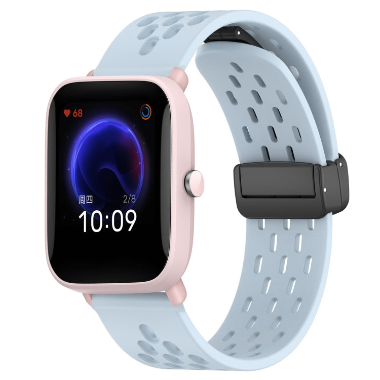 Correa de Reloj de Silicona para Amazfit Pop Pro con Cierre Magnético Plegable de 20mm (Azul Claro)
