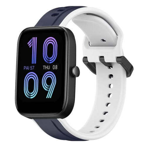 Correa de Reloj Amazfit GTS 2 Mini 20mm Silicona Dos Colores (Azul Medianoche + Blanco)