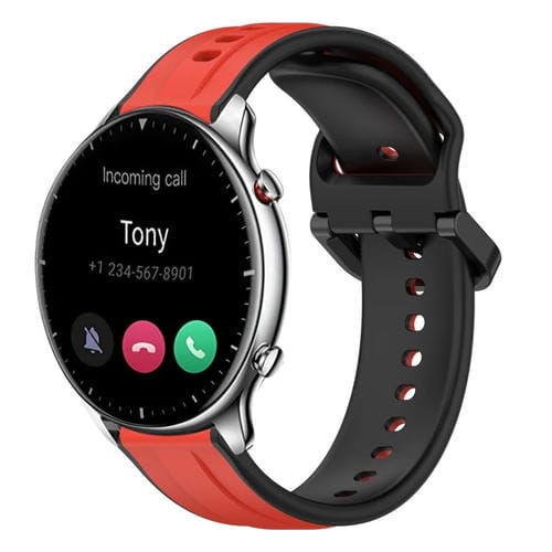 Correa de Silicona para Amazfit GTR 2 con Bucle Convexo de 22mm (Rojo + Negro)