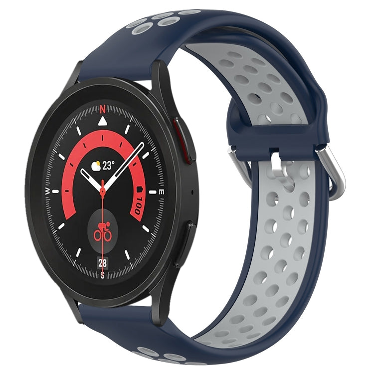 Banda de Reloj de Silicona Deportiva para Samsung Galaxy Watch 5 44mm 20mm (Azul Medianoche + Gris)