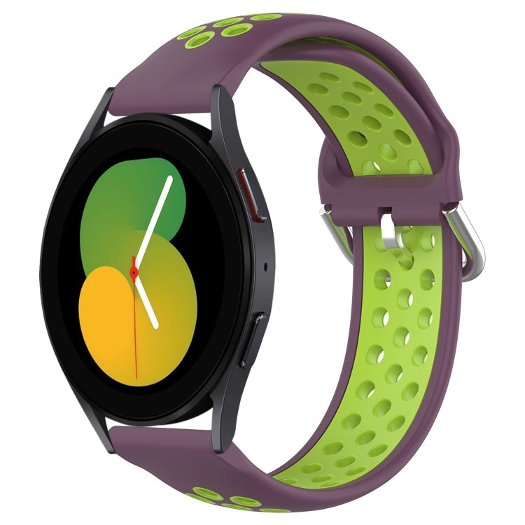 Banda de Reloj para Samsung Galaxy Watch 5 44mm 20mm Silicona Deportiva Perforada (Púrpura + Lima)