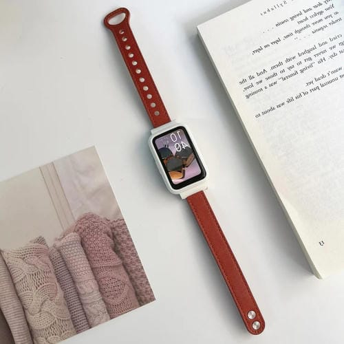 Correa de Cuero para Xiaomi Mi Band 7 Pro con Remaches Dobles (Marrón)