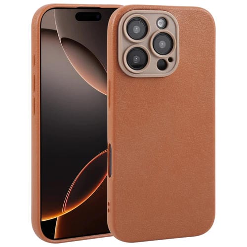 Funda para Teléfono iPhone 16 Pro Tapa Trasera Piel Sintética Lisa (Marrón)
