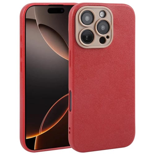 Funda para Teléfono iPhone 16 Pro Parte Trasera Piel Sintética Lisa (Roja)
