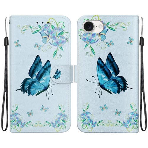 Funda de Cuero iPhone 16E Dibujo de Colores Textura de Cristal (Pensamientos Azules)
