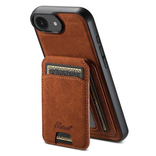 Funda de Cuero Tipo Billetera con Tapa y Soporte para iPhone 16E Suteni H02 (Marrón)