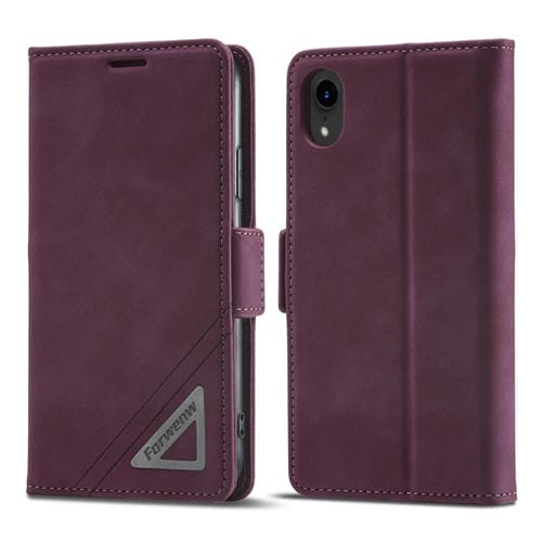 Funda de Cuero FoRWenw para iPhone Xr con Hebilla de Doble Cara (Rojo Vino)
