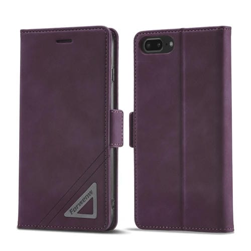 Funda de Cuero FoRWenw para iPhone 7 Plus y 8 Plus con Hebilla de Doble Cara (Rojo Vino)