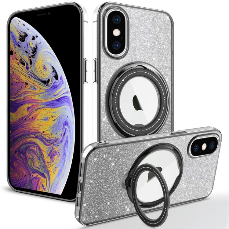 Estuche para teléfono TPU iPhone X / Xs Rotación Magsafe Holder con Brillo Degradado (Negro)