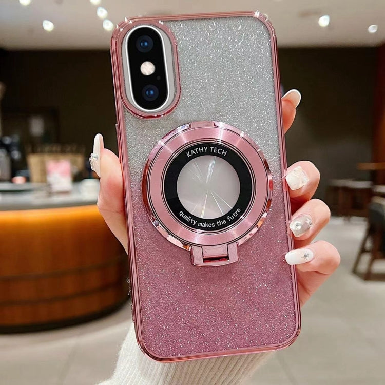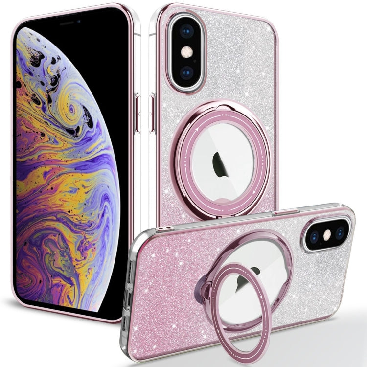 Estuche para Teléfono Magsafe para iPhone X / Xs con Brillo Degradado y Soporte Galvanizado (Rosa)