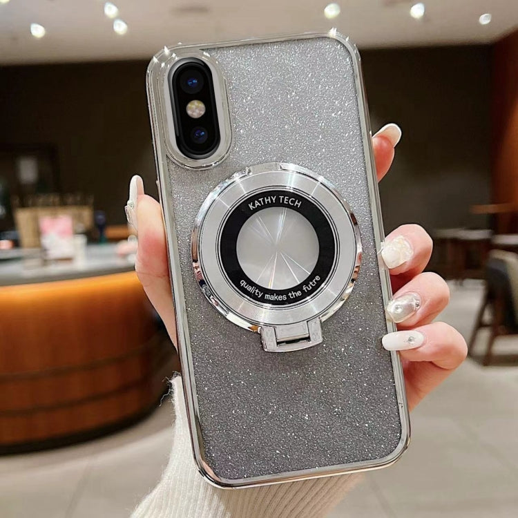 Estuche para Teléfono con Soporte Galvanizado y Purpurina Degradada Magsafe para iPhone Xr (Plateado)
