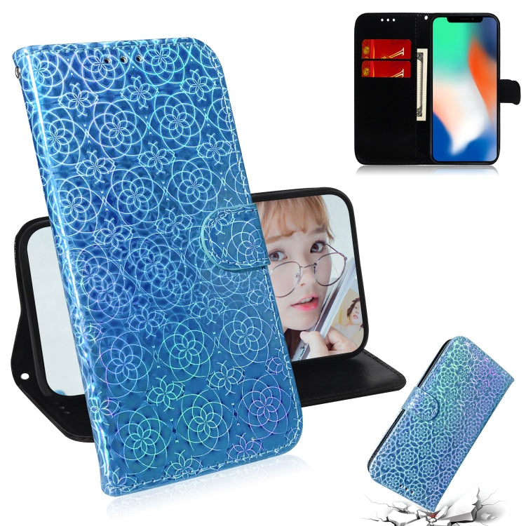 Funda para iPhone X Xs PU con Hebilla Magnética Soporte y Ranuras Azul