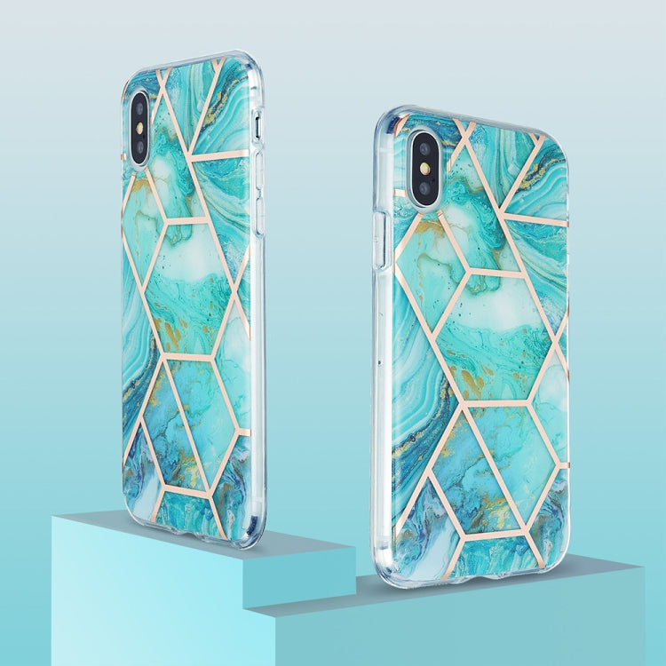 Estuche Protector TPU iPhone X Xs Patrón Mármol Galvanoplastia 3D (Verde Azul)