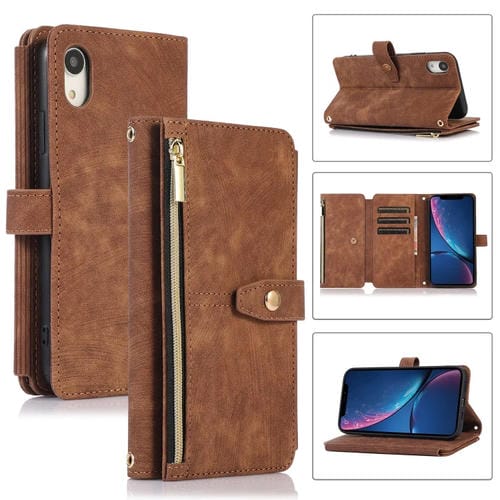 Funda para iPhone Xr Dream 9-Card Wallet Zipper Bag de Cuero para Teléfono (Marrón)