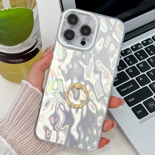 Funda para Teléfono TPU iPhone 16 Pro con Anillo Textura Brillante (Arrugas Blancas)
