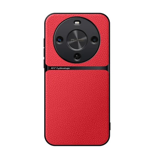 Funda para Teléfono Huawei Pura 70 Piel de Lichi Cobertura Total Magnética a Prueba de Golpes (Roja)