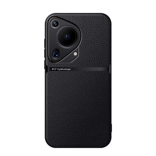 Funda para Teléfono Huawei Pura 70 Piel de Lichi Cobertura Total Magnética Negra