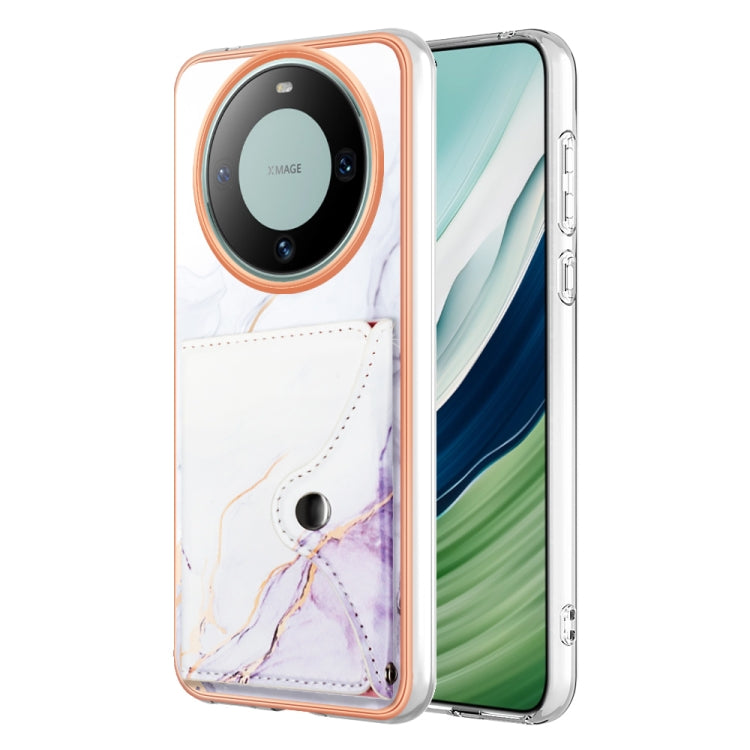 Estuche para Teléfono Huawei Mate 60 Pro con Ranura para Tarjeta IMD Patrón Mármol (Blanco y Morado)
