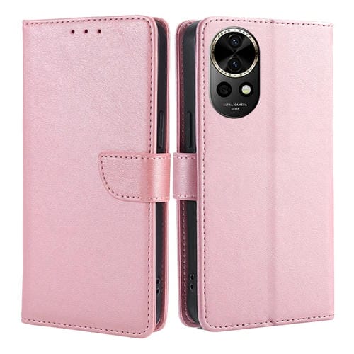 Funda para Huawei Nova 12 5G de Cuero con Tapa, Hebilla y Textura de Becerro (Oro Rosa)