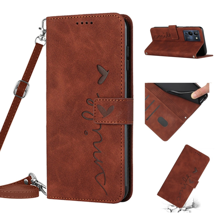 Funda de Cuero con Cordón para Infinix Note 12/12 Pro Skin Feel Heart Pattern (Marrón)