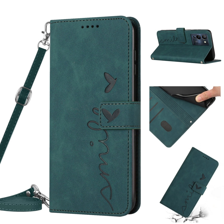 Funda de Cuero para Infinix Note 12/12 Pro con Cordón Skin Feel Heart Pattern (Verde)