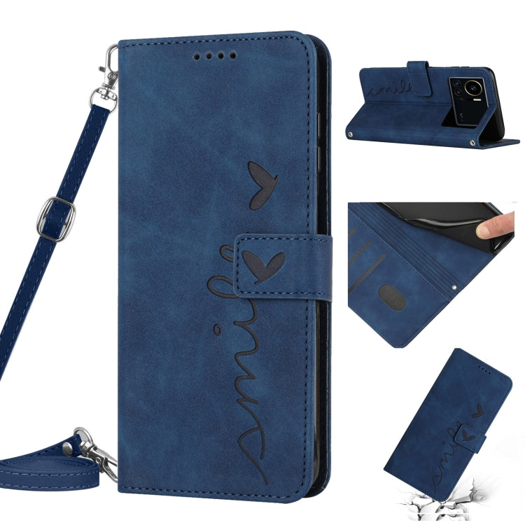 Funda de Cuero para Infinix Note 12/12 Pro Skin Feel con Patrón de Corazón y Cordón (Azul)