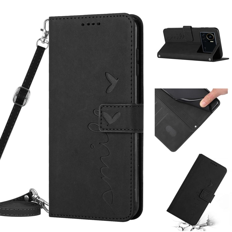 Funda de Cuero para Infinix Hot 12 Play Skin Feel con Patrón de Corazón y Cordón (Negro)