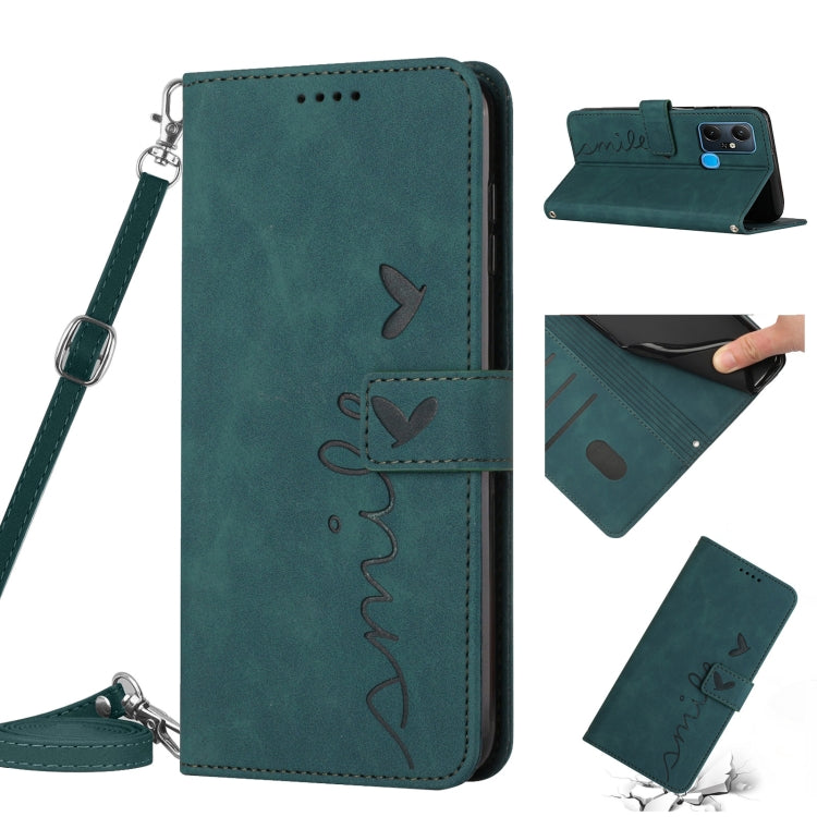 Funda de Cuero para Infinix Smart 6 Plus Skin Feel con Patrón de Corazón y Cordón (Verde)