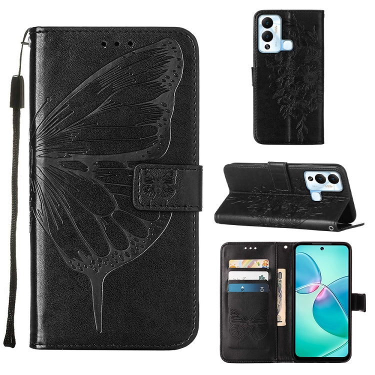 Estuche para Infinix Hot 12 X6817 de Cuero con Tapa de Mariposa en Relieve (Negro)