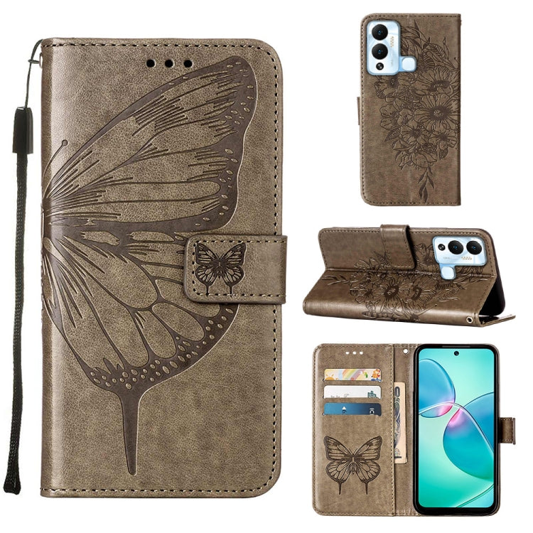 Estuche para Teléfono Infinix Hot 12 X6817 Cuero con Tapa de Mariposa en Relieve (Gris)