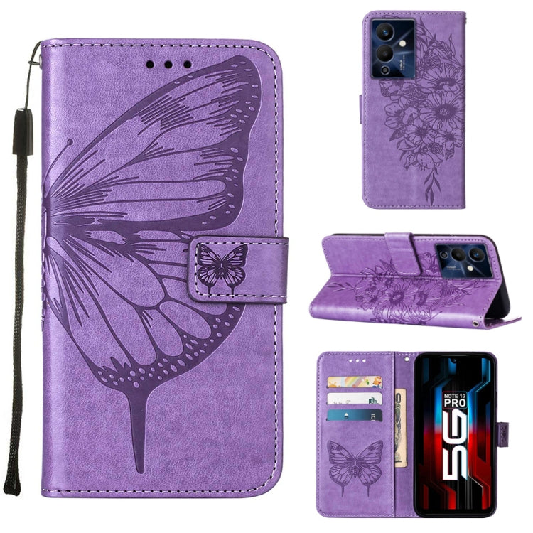 Estuche para Teléfono Infinix Note 12 Pro 5G Cuero con Tapa de Mariposa en Relieve (Púrpura)