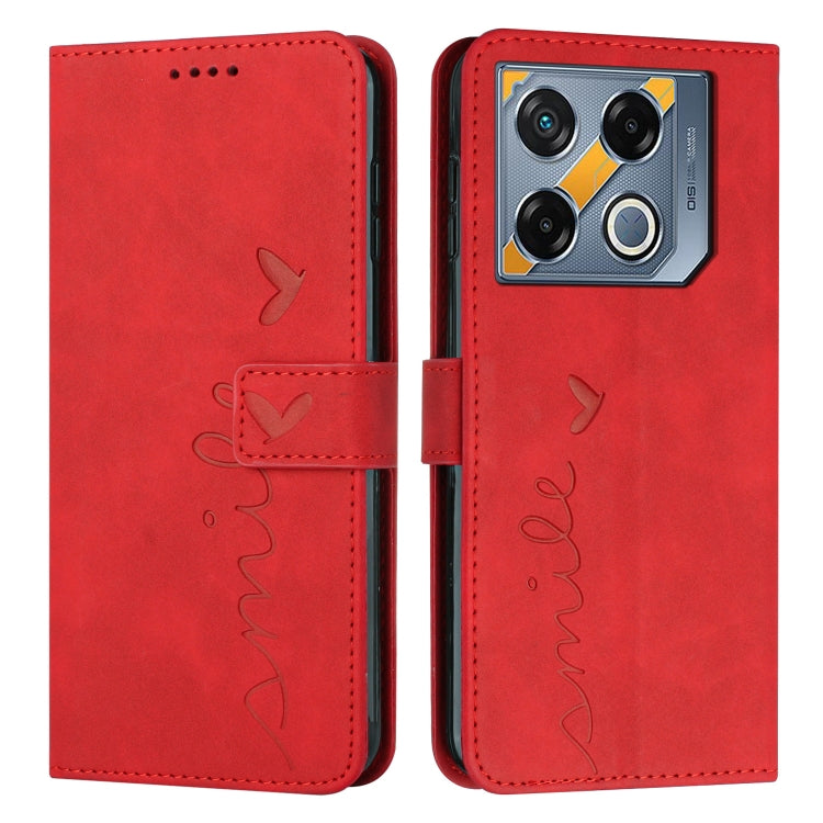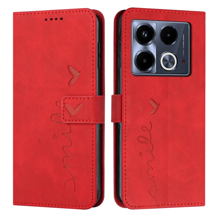 Funda para Infinix Note 40 5G Skin Feel Heart de Cuero en Relieve con Cordón Largo (Rojo)