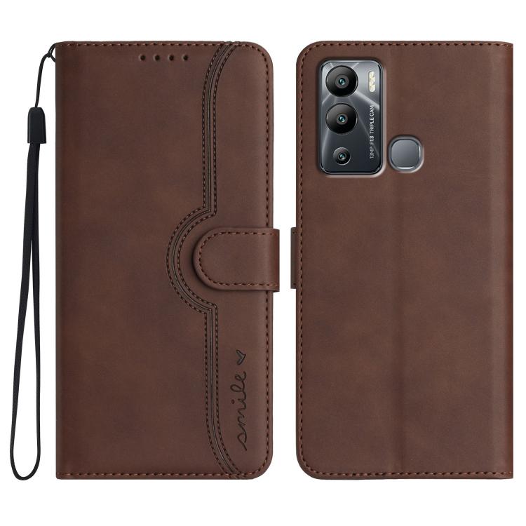 Funda de Cuero para Infinix Hot 20 4G con Diseño de Corazón (Marrón)
