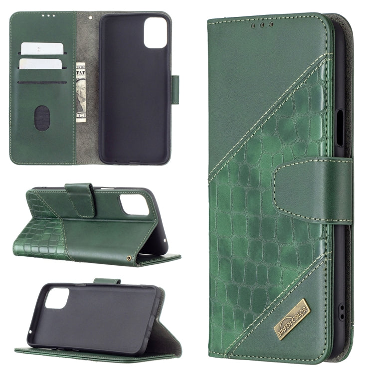 Funda de Cuero LG K42 Flip Horizontal con Textura Cocodrilo, Billetera y Soporte (Verde)